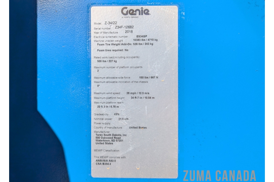 | Platform Height | 34 Ft |